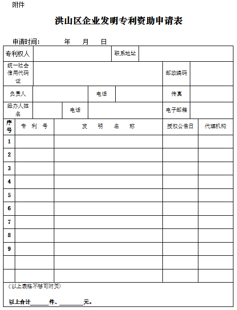 1、洪山區(qū)企業(yè)發(fā)明專利資助申請表(附件);