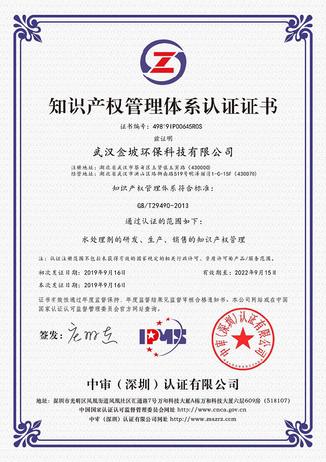 熱烈祝賀武漢金坡環(huán)??萍加邢薰居?019年9月獲得知識產(chǎn)權(quán)貫標(biāo)認(rèn)證證書,這意味著武漢金坡環(huán)保科技有限公司在知識產(chǎn)權(quán)領(lǐng)域獲得到重要認(rèn)可,在知識產(chǎn)權(quán)方面得到進(jìn)一步規(guī)范和在綜合競爭力得到進(jìn)一步提升。