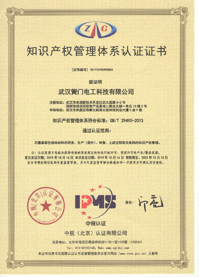 熱烈祝賀武漢黌門電工科技有限公司于2019年10月獲得知識產權貫標認證證書,這意味著武漢黌門電工科技有限公司在知識產權領域獲得到重要認可,在知識產權方面得到進一步規(guī)范和在綜合競爭力得到進一步提升。
