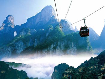 乘坐世界最長的高山客運索道---天門山索道(門票:258元/人,包含索道費,但是不含山頂小纜車費用),全長7455米,高差1279米,體驗凌空飛仙般的神奇感覺,感受騰云飛翔帶給您的刺激與震撼,空中欣賞壯麗的山水畫長卷,歷經(jīng)40分鐘左右直達天門山山頂。